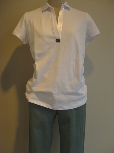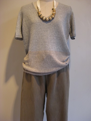 暑さもあり、襟無しや、大きく開いた襟ぐりタイプのトップスが多くなっても、毎年の様に登場。