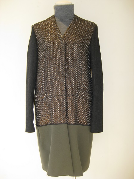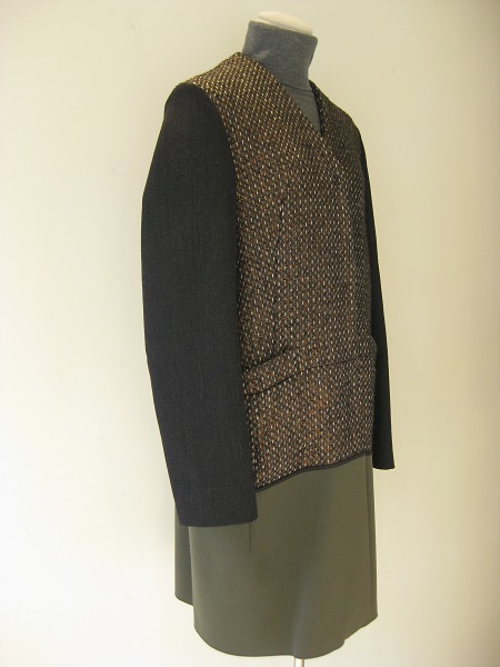 三種の素材を組み合わせたVネックのコートです。