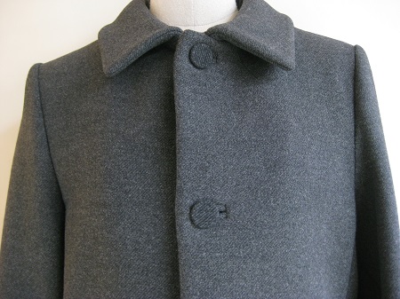 ステンカラーと包みボタンがポイントのコート。