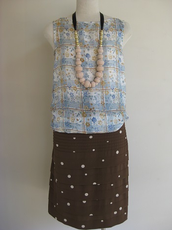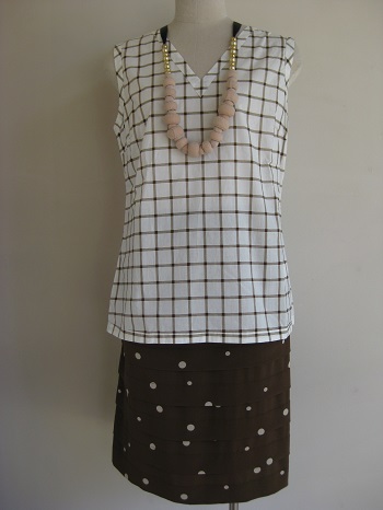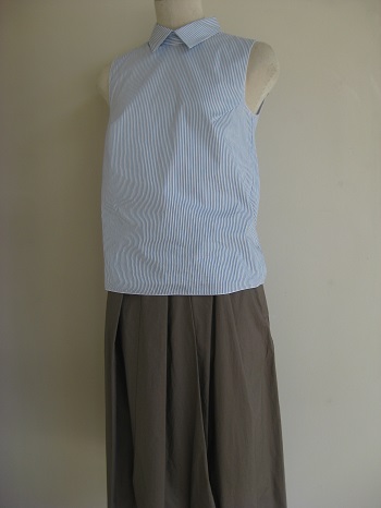 ノースリーブのインナーとセットなら、初秋の早取りファッションとして、