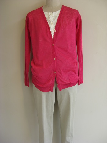 夏の陽ざしに負けないこんな色のカーディガンは、いかが!