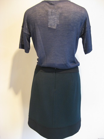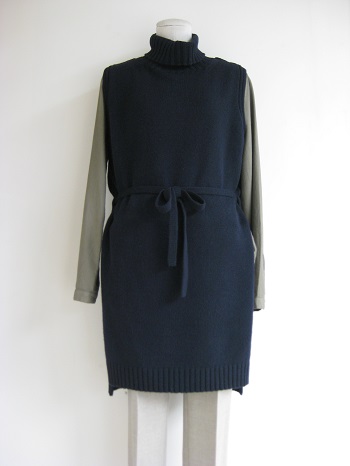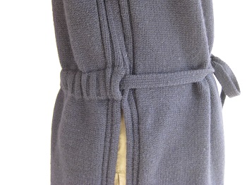 後ろ身頃にリブ編みのベルト通しが付き、