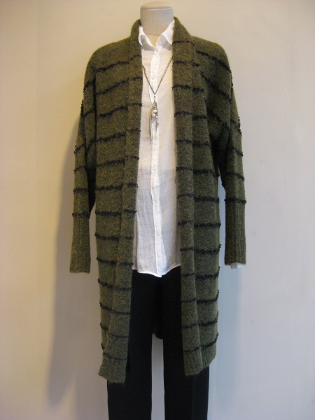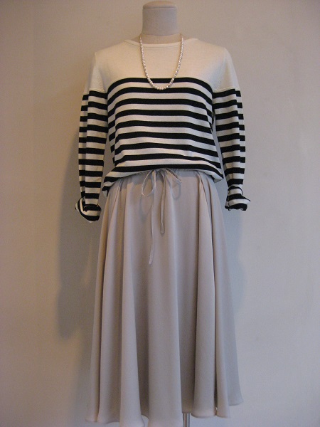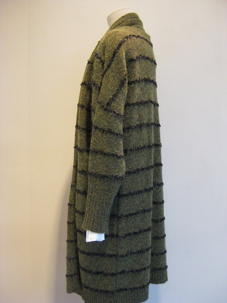 ドルマンになった袖は、切り替え部分でストライプになるのですが、