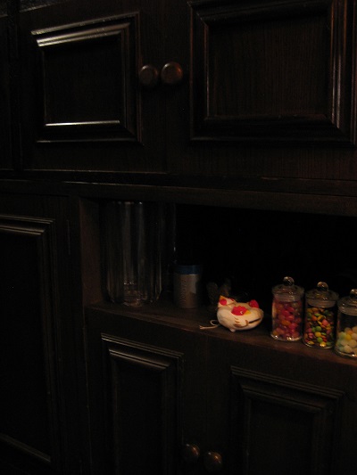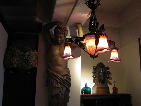 細い通路に、天井まであるドッシリとした趣きある家具。
