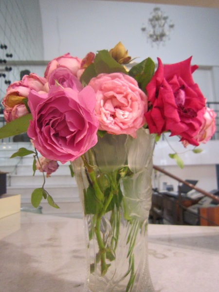 今週は裏庭のバラを飾ってってみました。