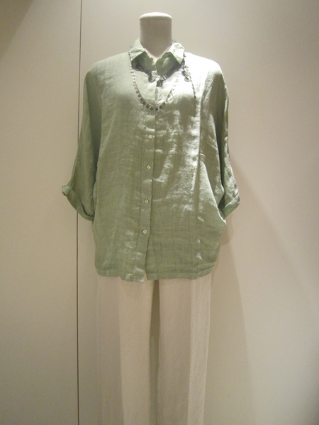 ミントカラーのブラウスは