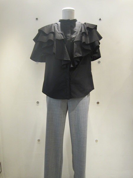 <ラッフル袖のブラウス>